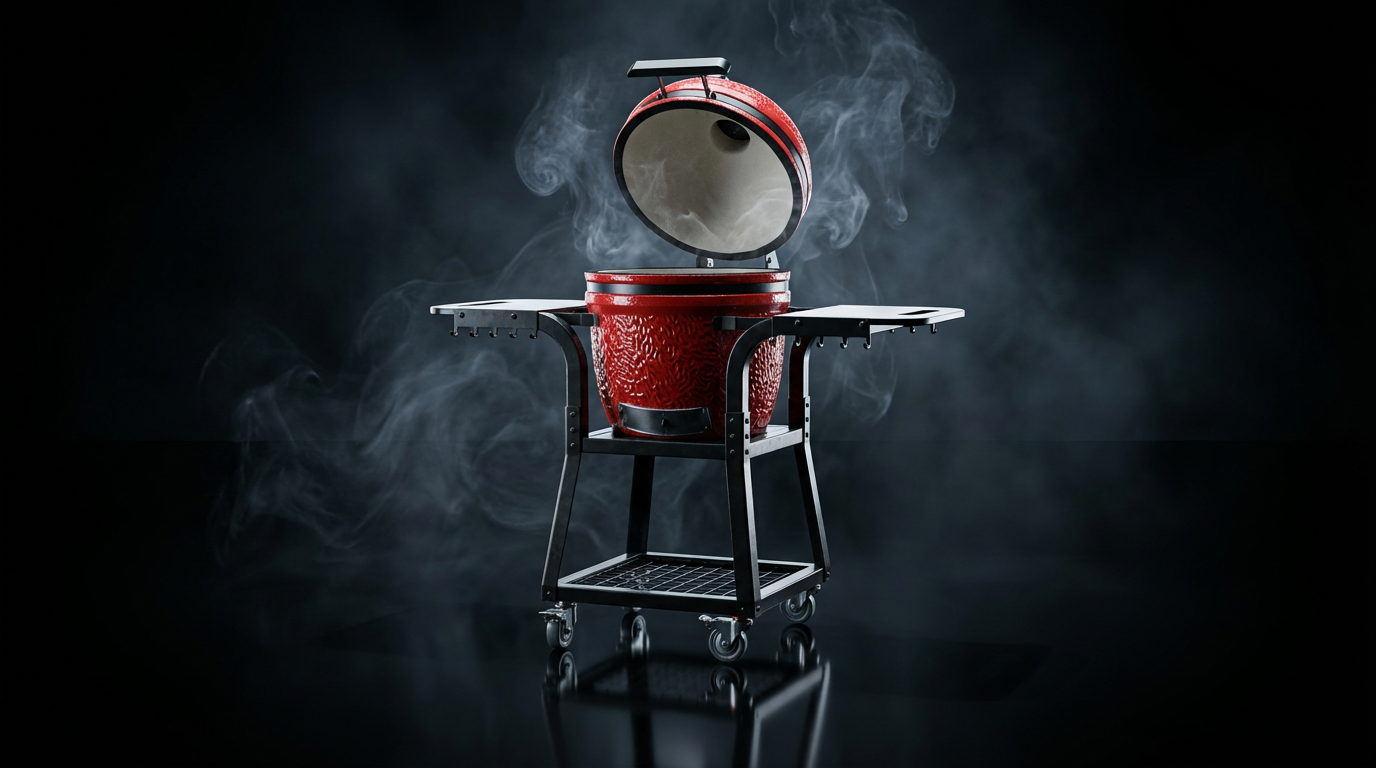 Mehr als nur ein Gestell. Der massive Trolley macht deinen Kamado zur mobilen Outdoor-Küche. Maximale Stabilität trifft auf Mobilität.