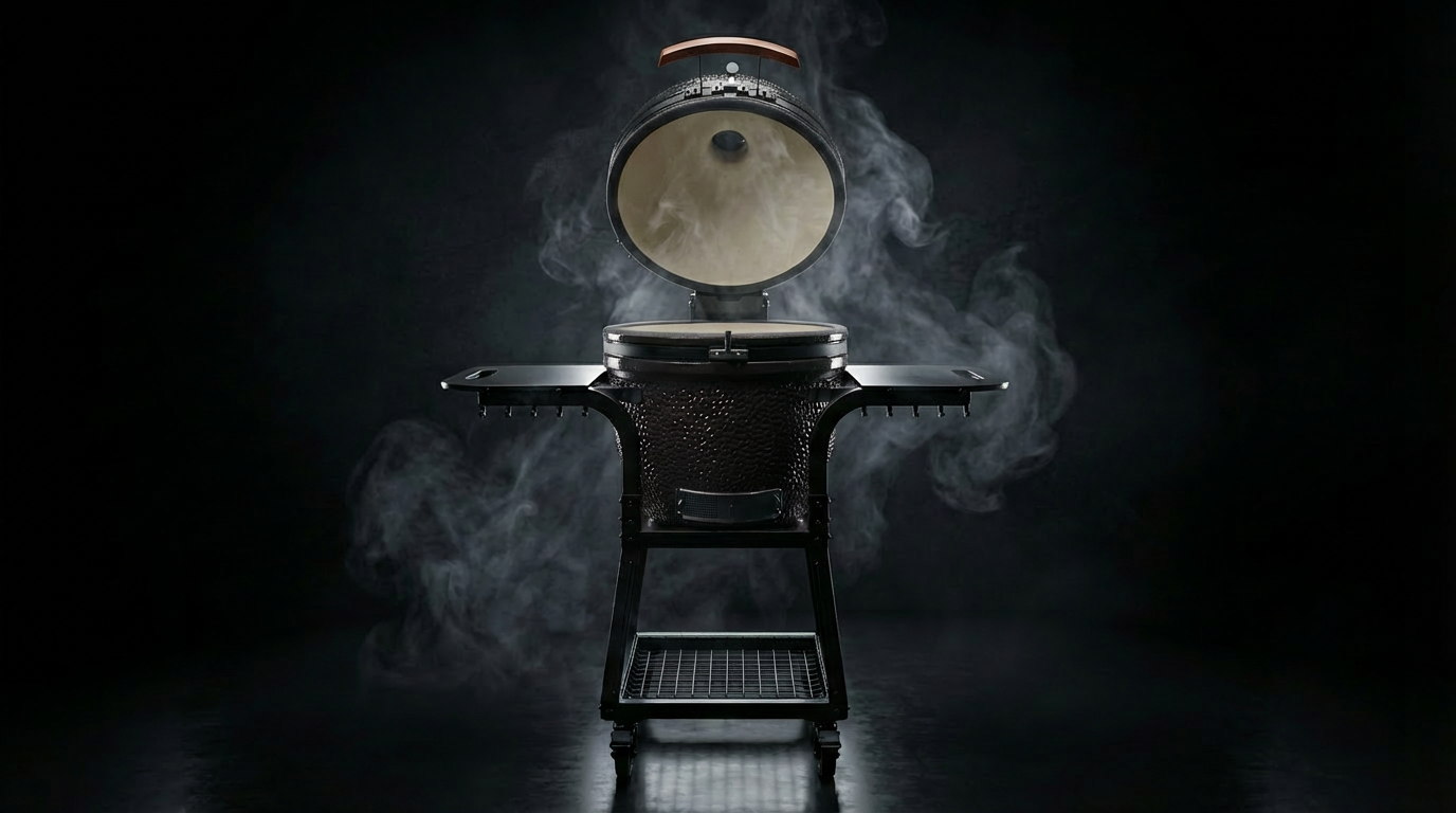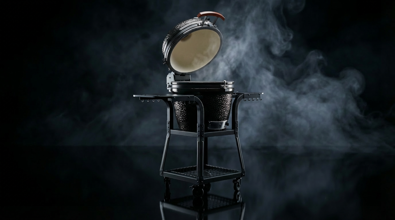 Mehr als nur ein Gestell. Der massive Trolley macht deinen Kamado zur mobilen Outdoor-Küche. Maximale Stabilität trifft auf Mobilität.
